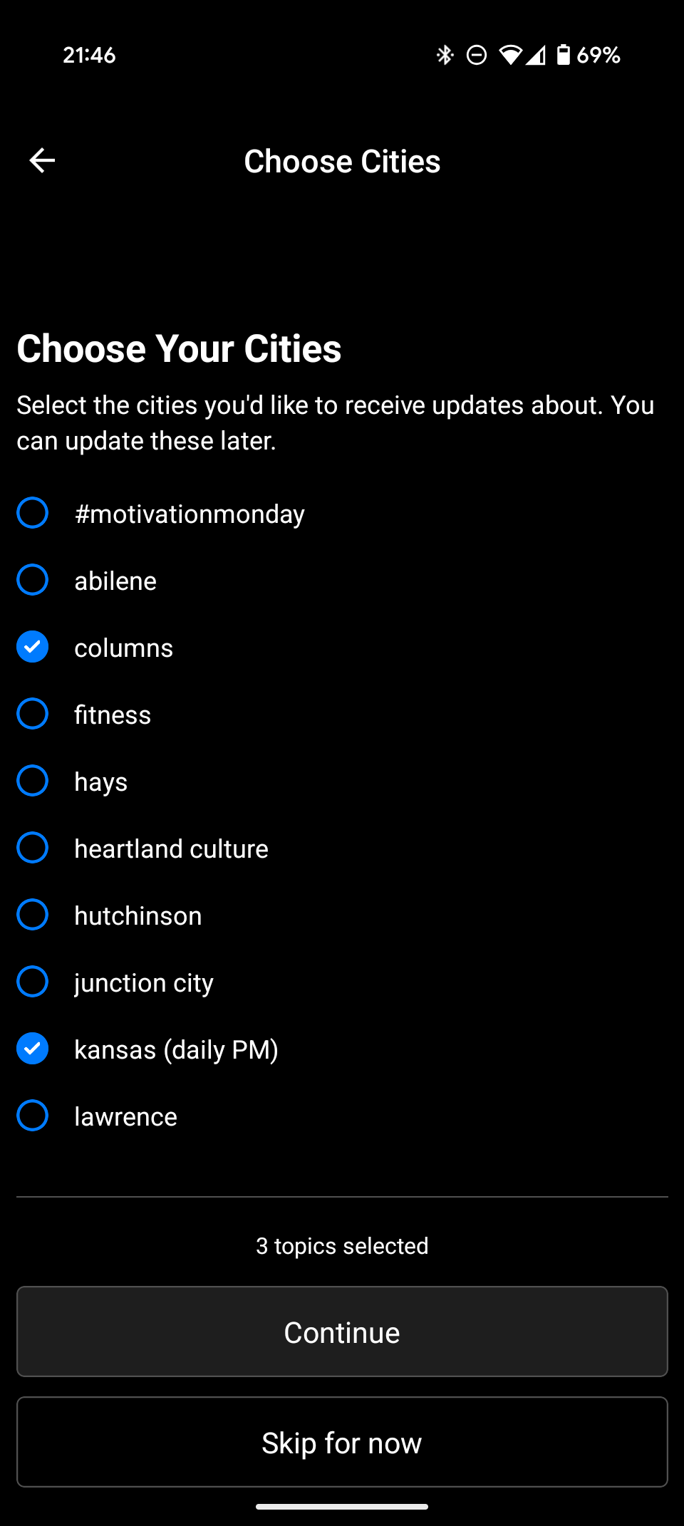 For our new users, you will see a new sign up flow when you first register for the app. We’ve added a screen that allows you to select which cities you receive notifications for. The options on this screen aren't locked in forever either - you may choose to change which cities you get notifications for further down the line.