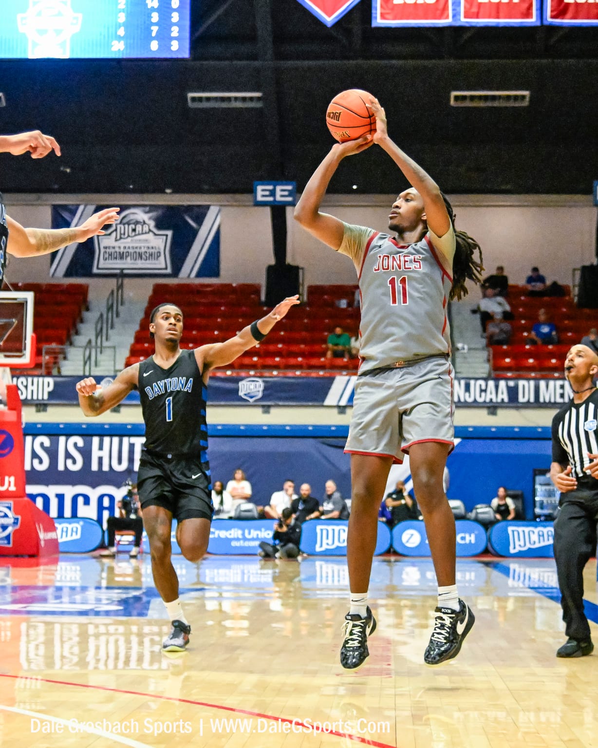 HUTCHINSON, Kan. — Daytona State College used relentless ball movement and dominant perimeter shooting to pull away from Jones College 103-74 in the opening round of the 2026 NJCAA Division I Men's Basketball Championship at Hutchinson Sports Arena on Saturday.