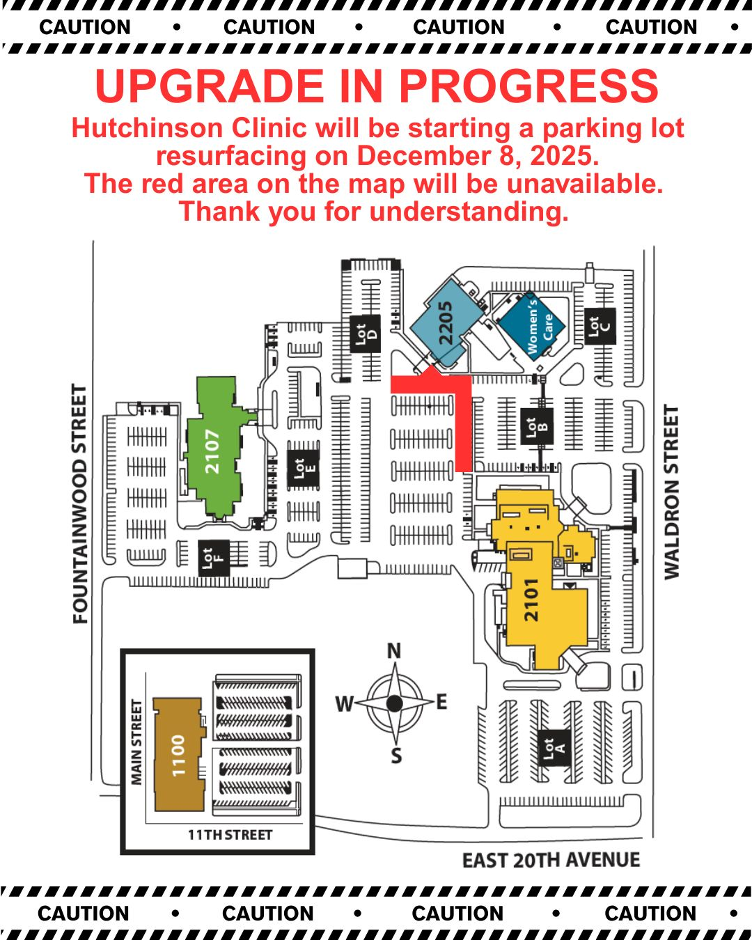 Additional details, including a map showing impacted parking areas, are available on the clinic's construction update page at hutchclinic.com/construction.