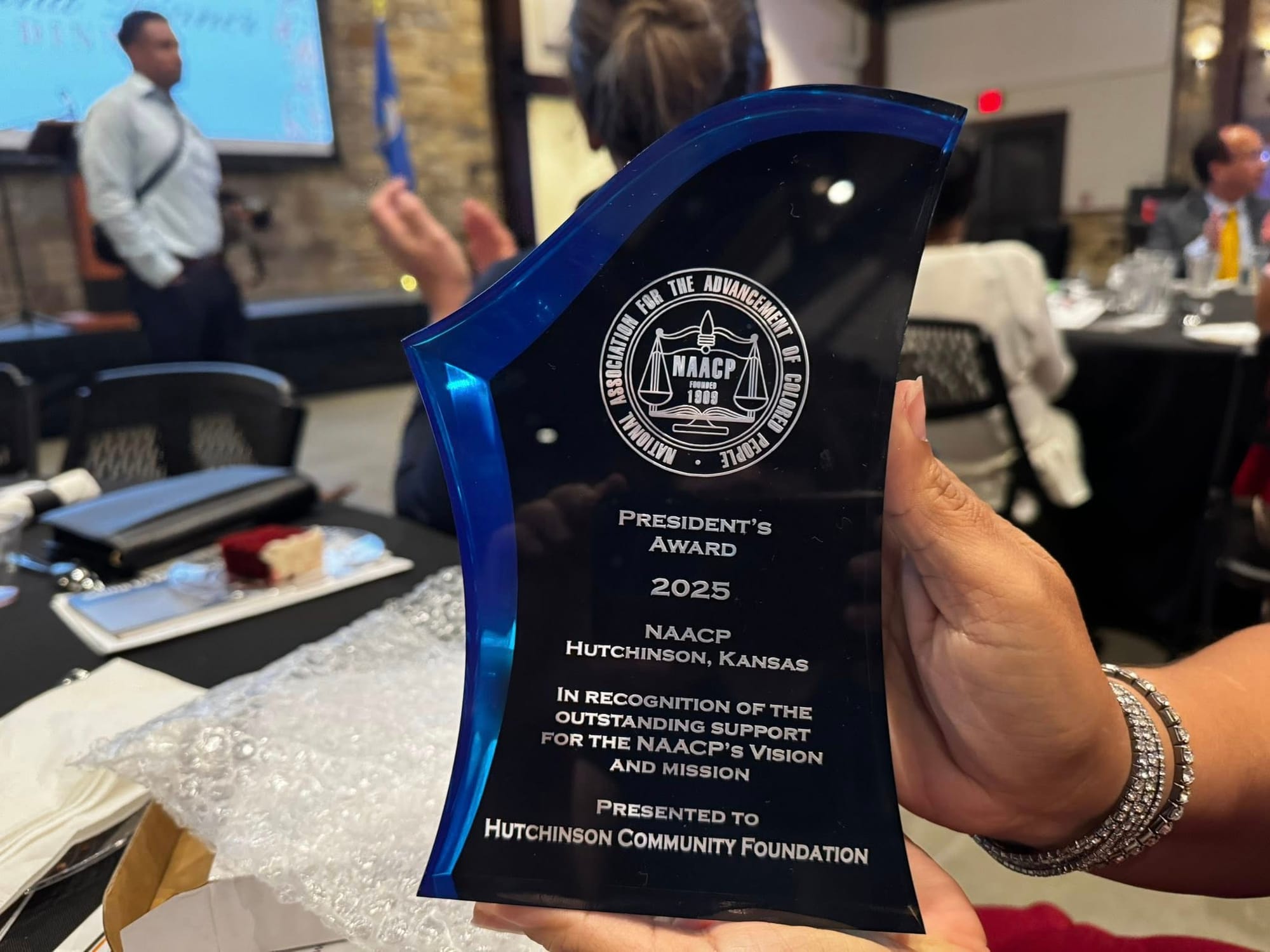 HUTCHINSON, Kan. — The Hutchinson Community Foundation received the 2025 President's Award from the NAACP Hutchinson branch at the organization's Freedom Fund Dinner on Saturday, October 4.