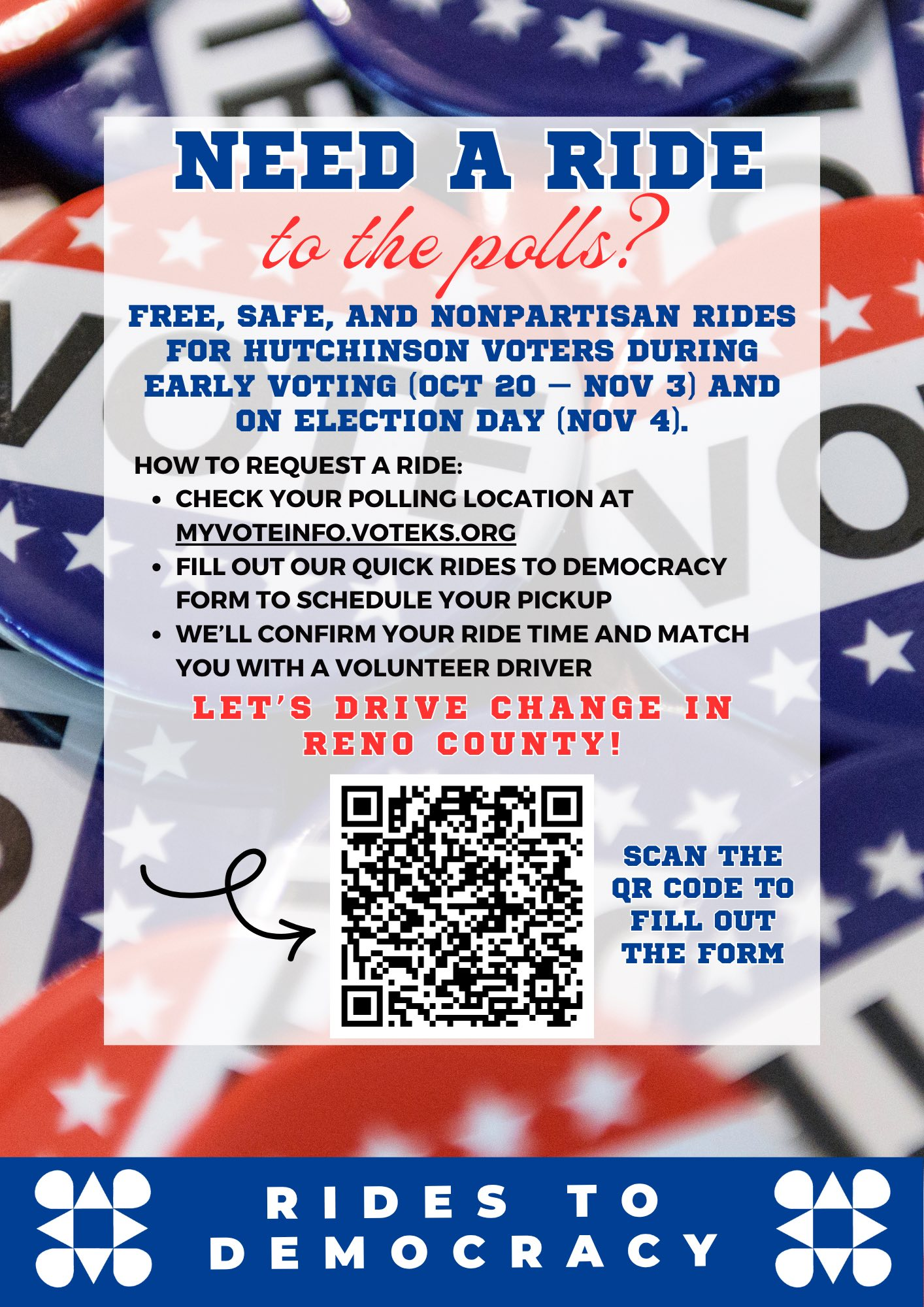 Hutch in Harmony is providing free transportation to voters through its Rides to Democracy initiative as early voting begins in Hutchinson.