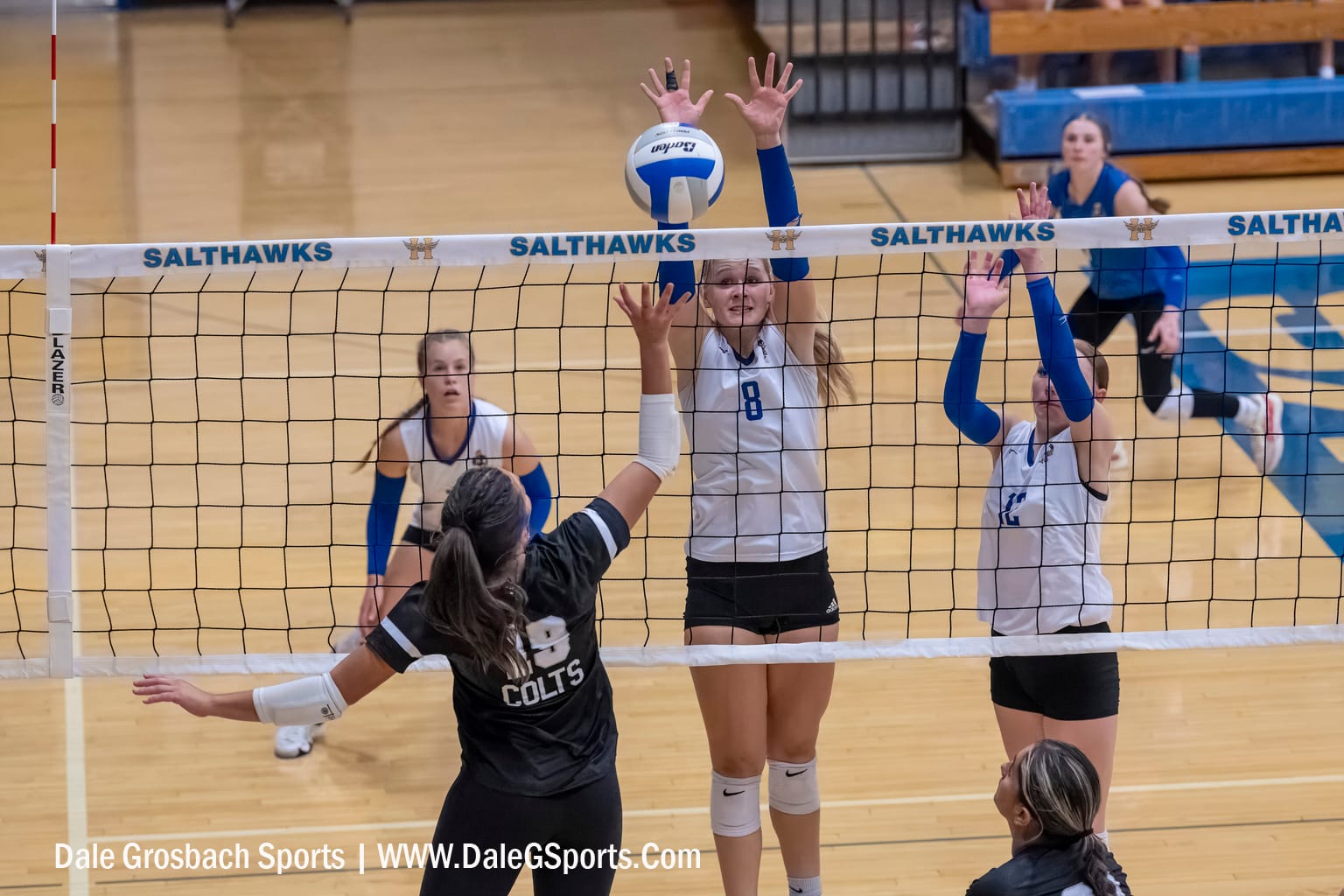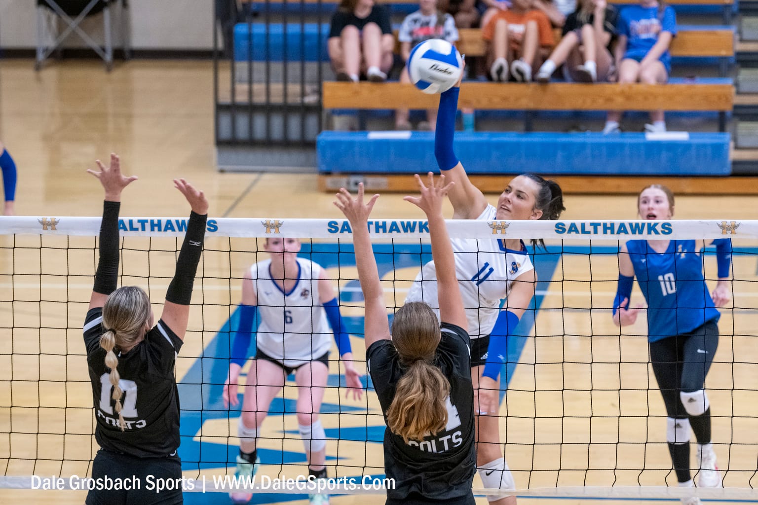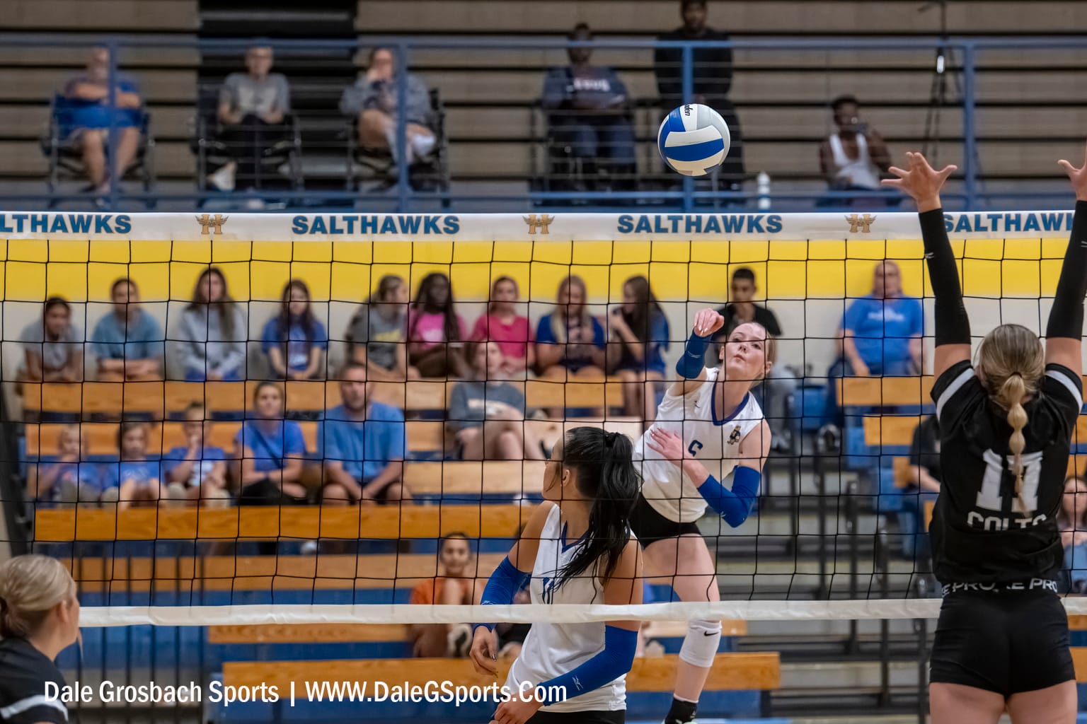 The Hutchinson High School Salthawks hosted a volleyball triangular with the Salina South High School Cougars and Haysville Campus High School Colts at the Salthawk Activity Center on Tuesday, Sept. 9, 2025. The Salthawks brought a 6-2 record into the meet.