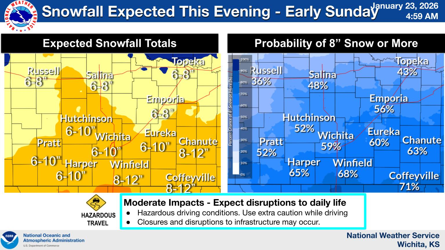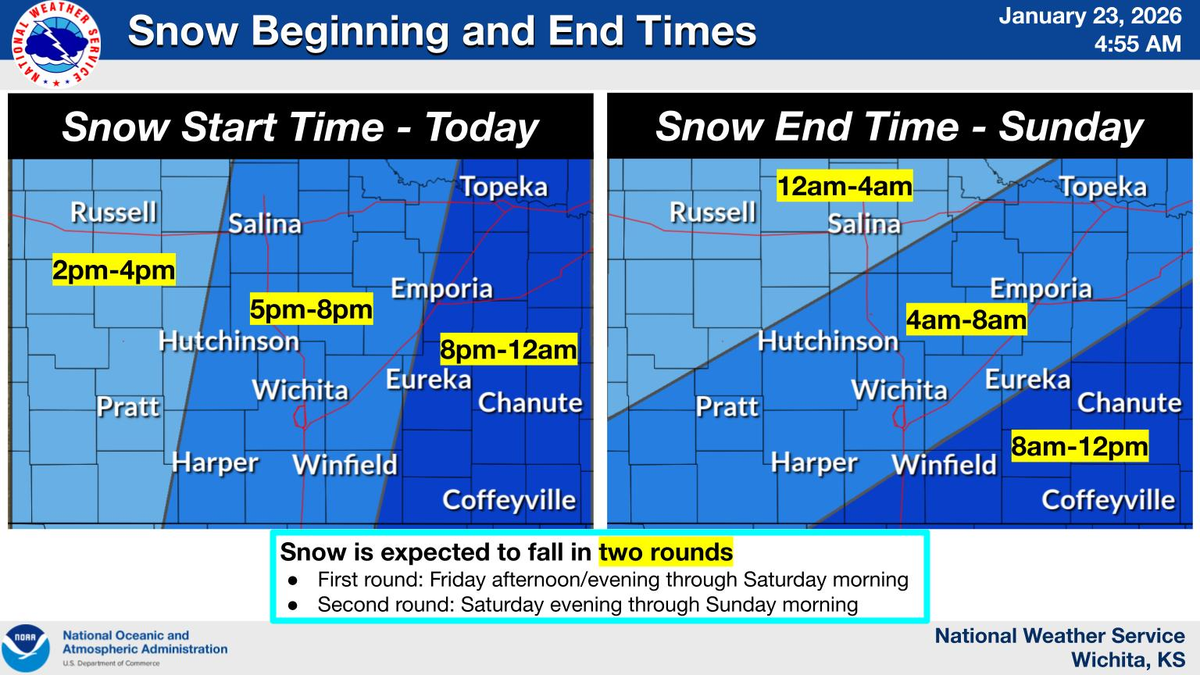 - Winter Storm: Kansas faces a dangerous winter storm Friday-Sunday with 6-10 inches of snow and life-threatening wind chills of 10-21 below zero through Monday, making travel highly discouraged.