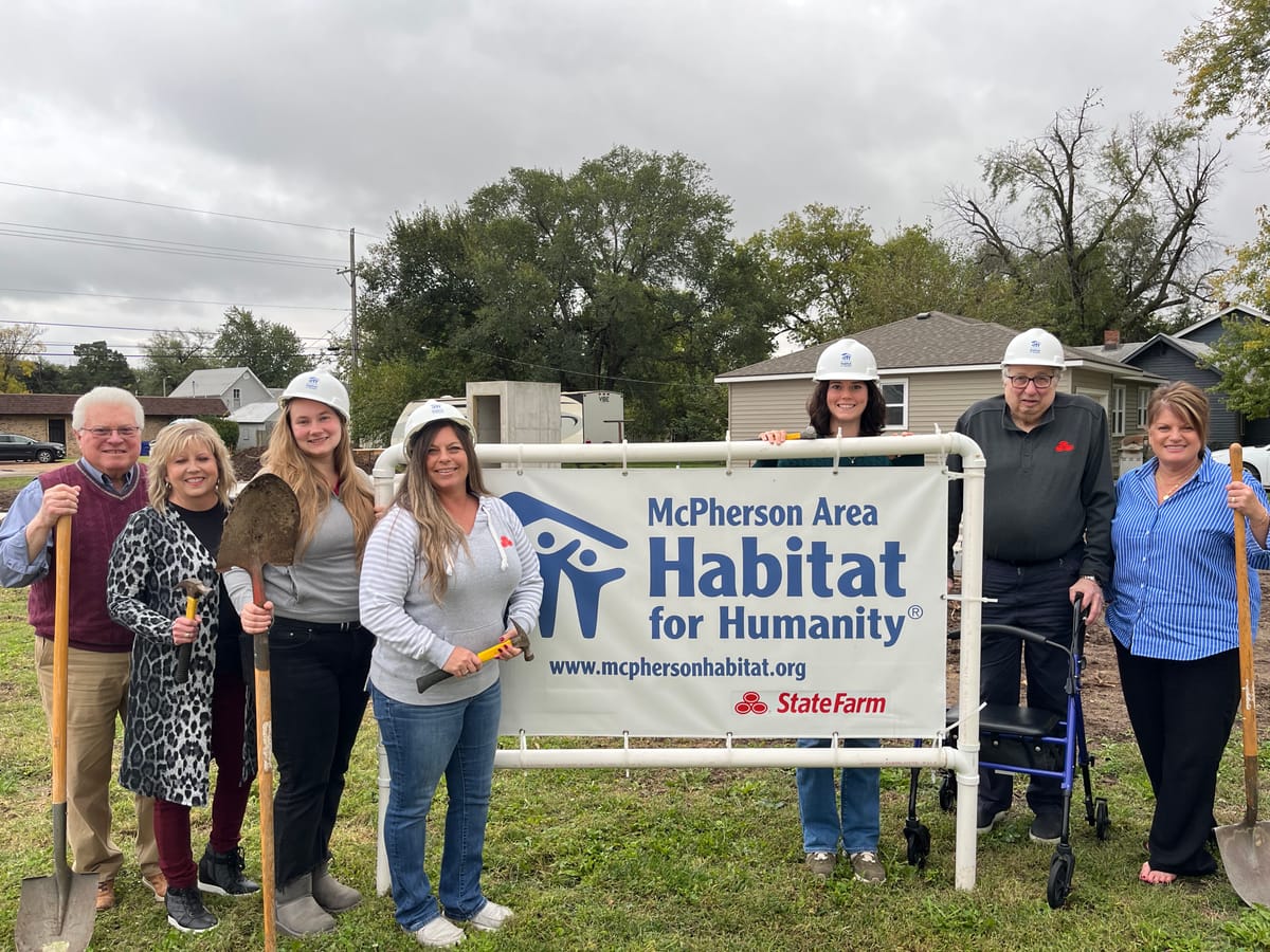 Local insurance agency volunteers contribute to affordable housing construction on North Maple Street.