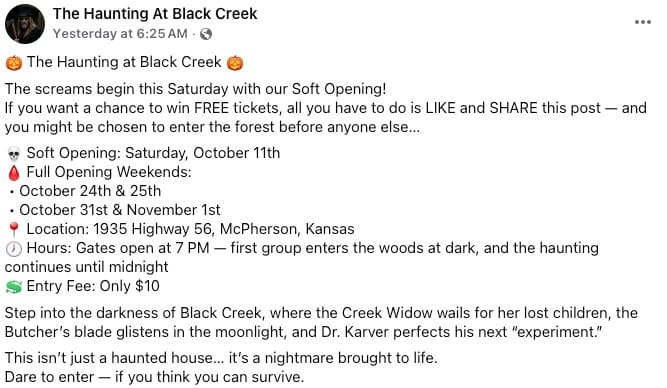 McPHERSON COUUNTY, Kan. – Commissioners unanimously approved a temporary zoning permit for a “haunted forest” event to be held on private property over the next four weekends. The applicant, Cord Nestor, plans to operate a spooky trail and hayride attraction. The approval is contingent on several conditions discussed during the meeting, including securing an insurance policy, limiting hours of operation to midnight and coordinating with the McPherson County Sheriff’s Office to have a deputy on-site for traffic control and security.