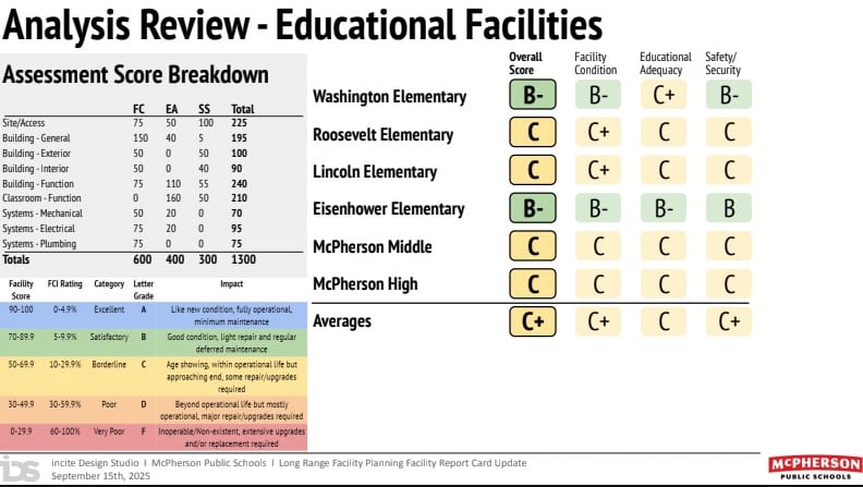 The McPherson Museum, located at 1111 E Kansas Ave, will host both sessions. Community members are encouraged to attend either session to review proposed options and provide feedback that will inform the district's final facility recommendations.