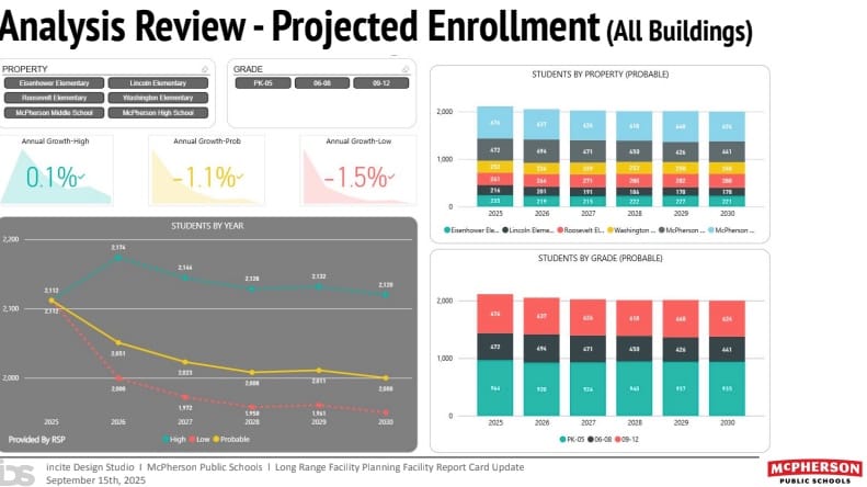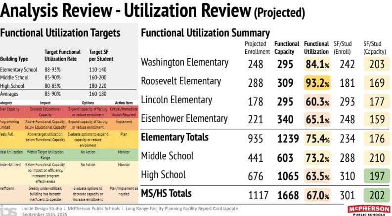 MCPHERSON, Kan - McPherson USD 418 will hold two all-community sessions Wednesday, October 22, at the McPherson Museum to present facility consolidation options as the district confronts projected enrollment declines and underutilized buildings over the next five years.