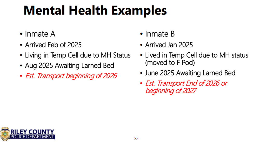 MANHATTAN, Kan. — The Riley County Law Enforcement Board heard a stark warning Monday about the county jail's growing population crisis, with officials saying the facility is straining under an inmate population that has doubled over the past five years and is now unsustainable without major expansion or relocation.