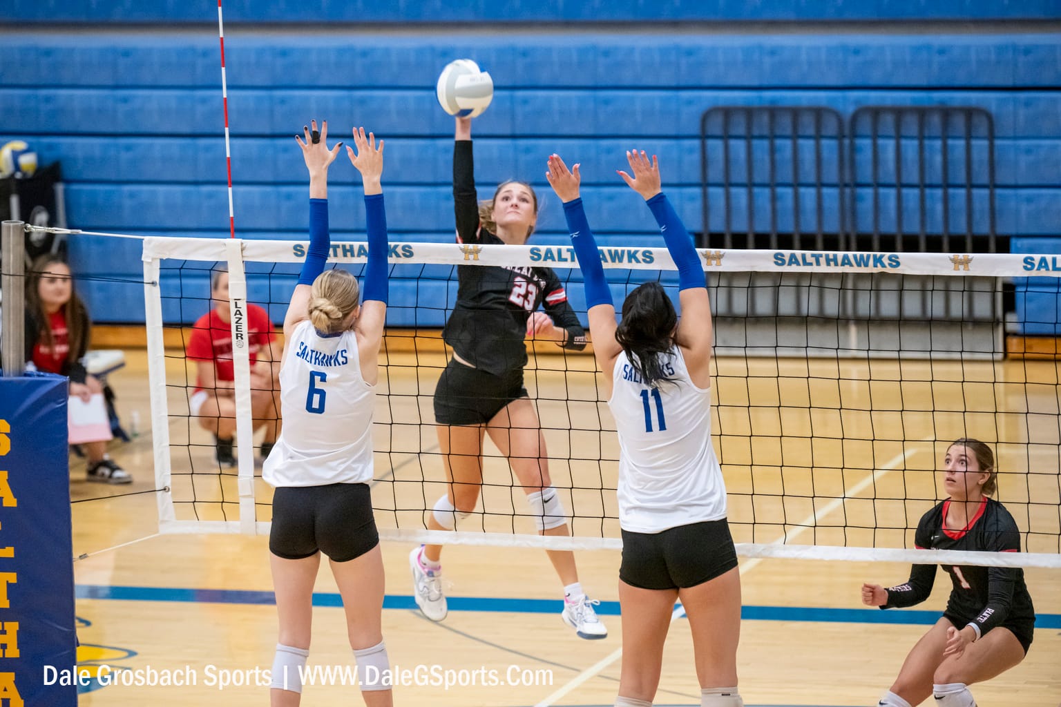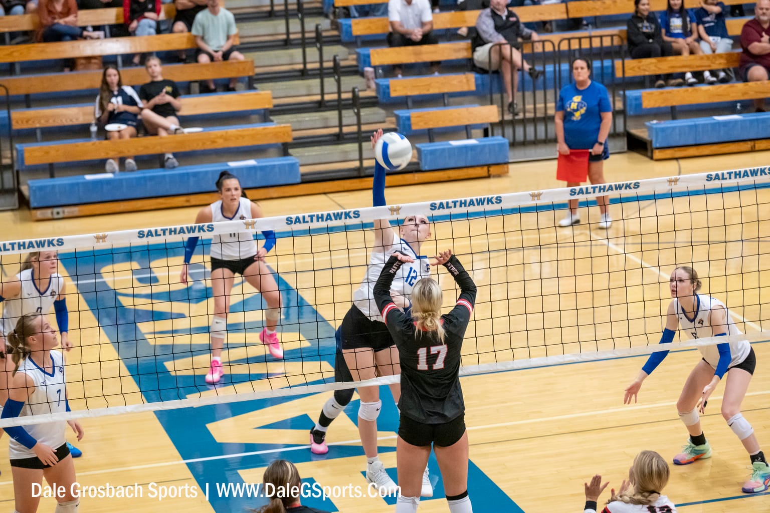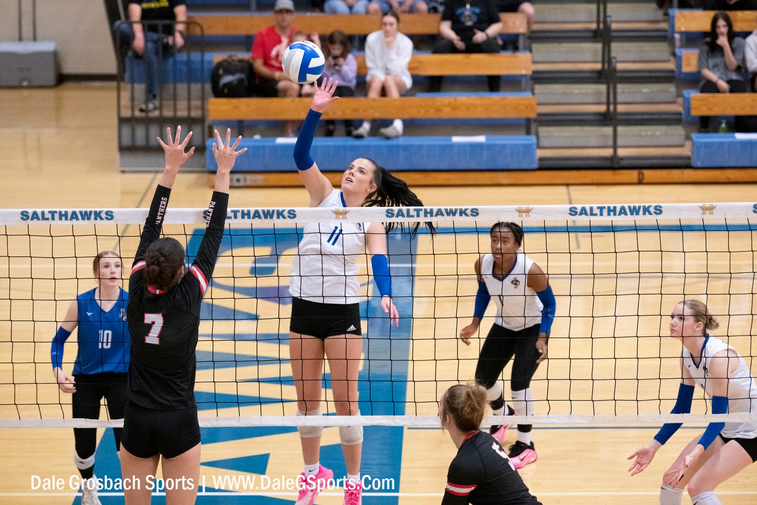 The Hutchinson High School Salthawks volleyball team (10-7-2) hosted the Great Bend High School Panthers (8-4) and the Goddard High School Lions (9-12) for a triangular at the Salthawk Activity Center on Thursday, Sept. 25, 2025.