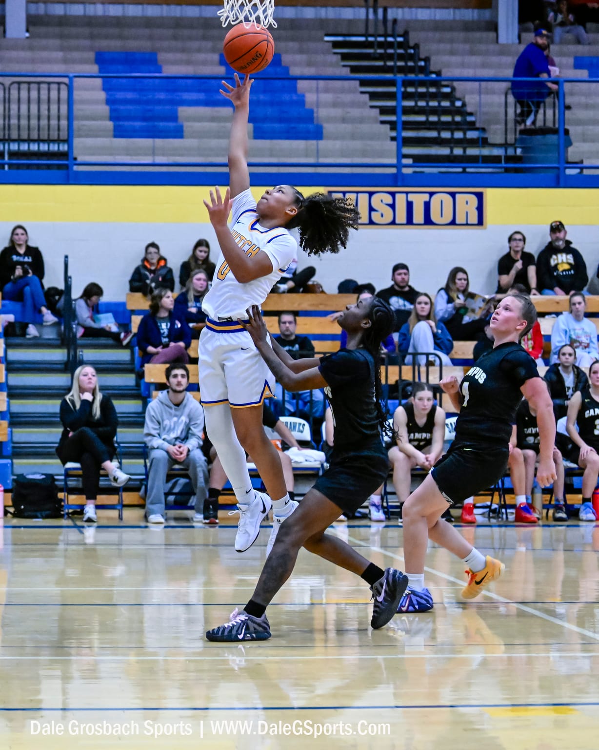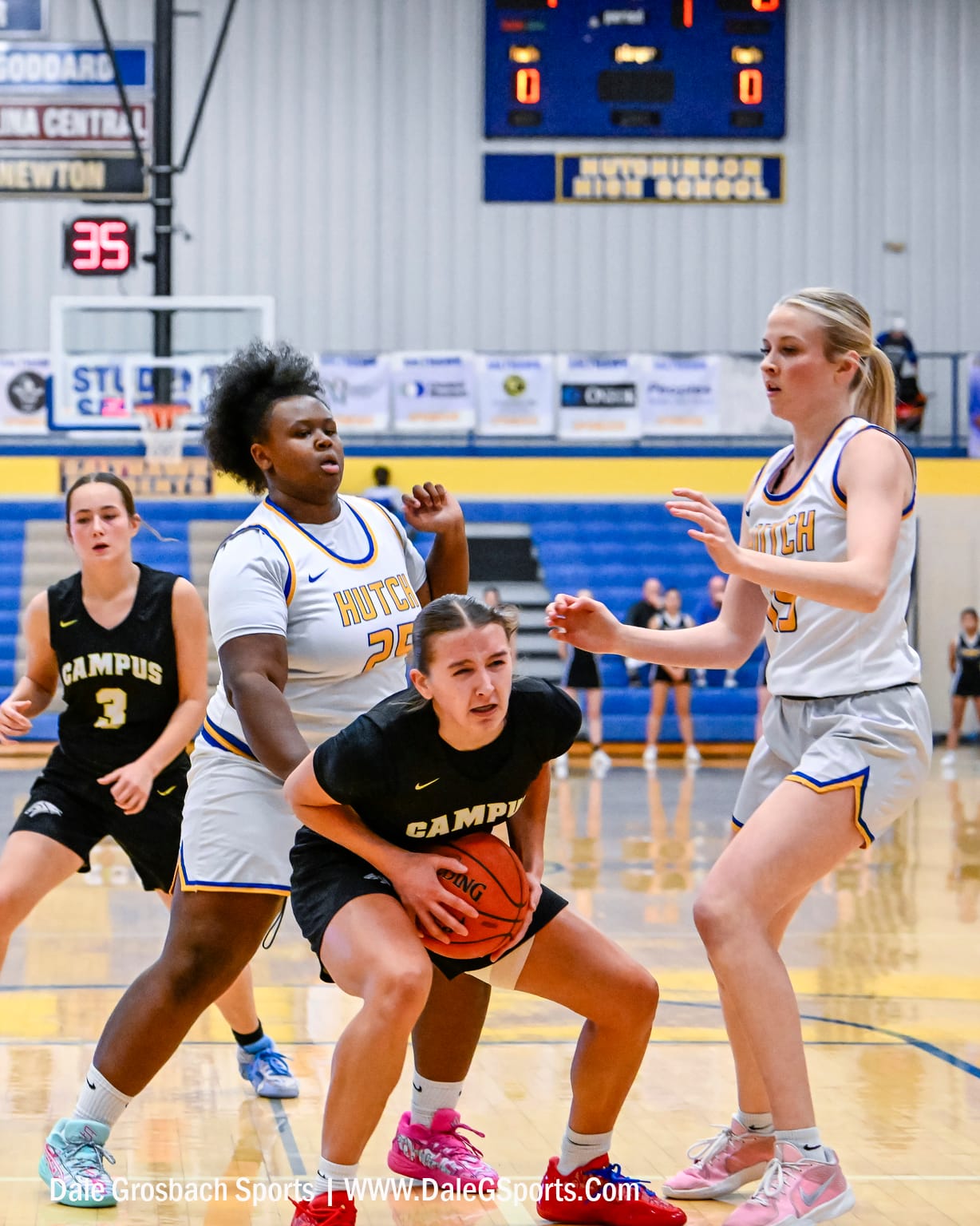 Salthawk seniors No. 25 Kohlbie Craft and No. 15 Ava Krone defend the Campus Colt player under the basket. The Hutchinson High School Salthawks defeated the Campus High School Colts 60-26 on Dec. 16, 2025, at the Salthawk Activity Center.Senior No. 5 Clara Ontjes brings the ball upcourt for the Hutchinson Salthawks versus the Campus Colts. The Hutchinson High School Salthawks defeated the Campus High School Colts 60-26 on Dec. 16, 2025, at the Salthawk Activity Center.Salthawk freshman No. 0 Danai Morgan operates the offense for the Hutchinson Salthawks versus Campus Colts. The Hutchinson High School Salthawks defeated the Campus High School Colts 60-26 on Dec. 16, 2025, at the Salthawk Activity Center.Salthawk senior No. 25 Kohlbie Craft grabs up the rebound for the Hutchinson Salthawks versus the Campus Colts. The Hutchinson High School Salthawks defeated the Campus High School Colts 60-26 on Dec. 16, 2025, at the Salthawk Activity Center.Freshman No. 0 Danai Morgan skies to the basket for the Hutchinson Salthawks versus the Campus Colts. The Hutchinson High School Salthawks defeated the Campus High School Colts 60-26 on Dec. 16, 2025, at the Salthawk Activity Center.