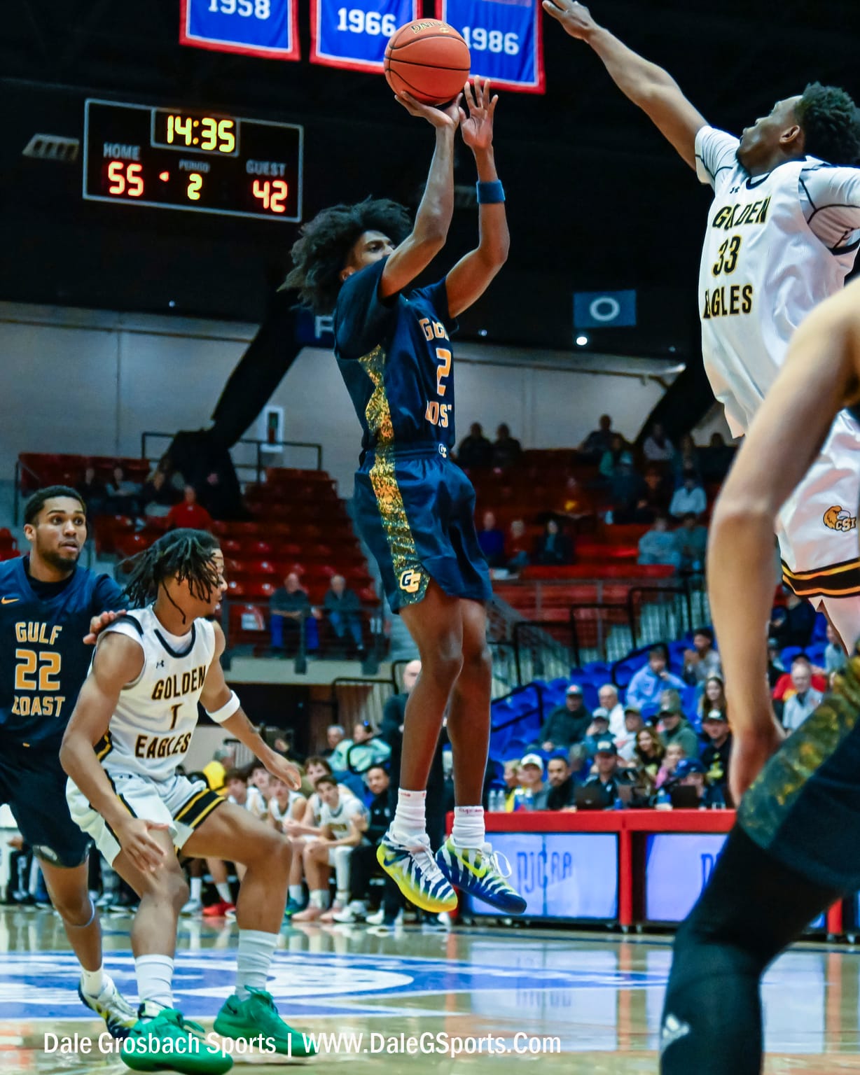 Sophomore Devonte Cobbs led Gulf Coast with 22 points, including 15 from 3-point range. Sophomore Trent Lincoln contributed 11 points and freshman Jabari Quarterman netted 10 points and pulled down seven rebounds. Southern Idaho had four players score in double figures, with sophomore Jalen Lyn netting 24 and freshman Ace Reiser adding 23. Both Lyn and Reiser were impressive from beyond the arc, making four and five 3-pointers, respectively.