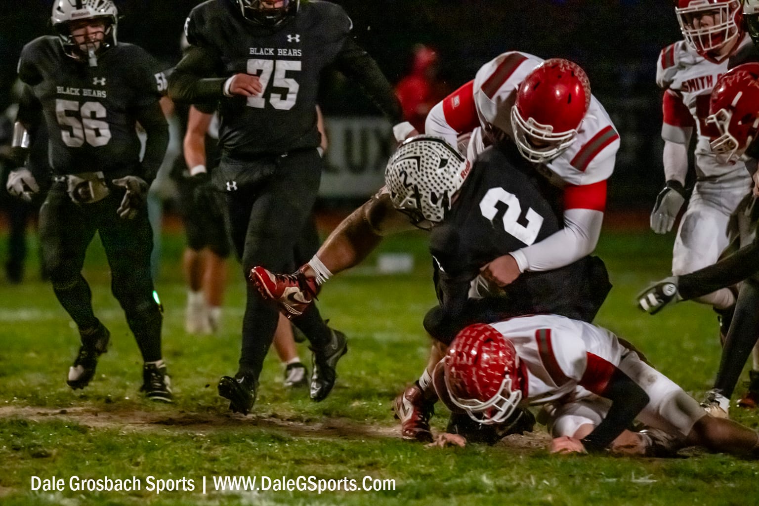 Shortly thereafter, bad luck struck Smith Center. After recovering an onside kickoff attempt by Sterling, the Redmen fumbled the ball away to the Black Bears at their own 40-yard line. Sterling completed a pass to the Smith Center 10-yard line, setting up first-and-goal. Three plays later, the Black Bears pushed in their second touchdown, followed by a successful extra point, extending their lead to 14-0.