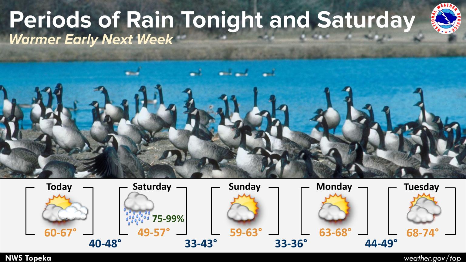 - Expect a mild and partly cloudy day with a high of 64°F before temperatures drop sharply to 24°F tonight.
