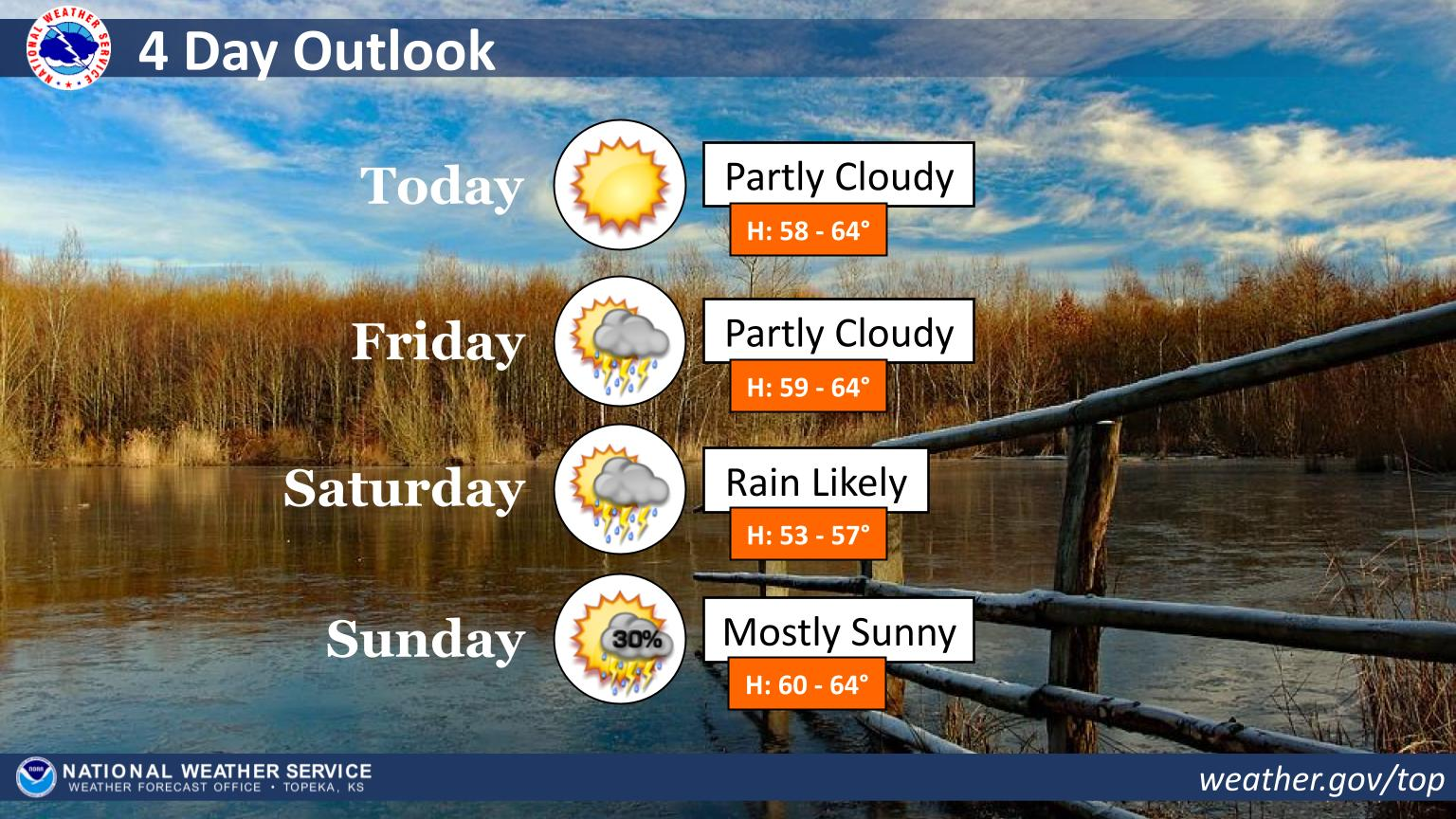 - Expect a mostly cloudy day with a mild high of 61°F, though you'll want a coat tonight as temperatures drop to a chilly 27°F.
