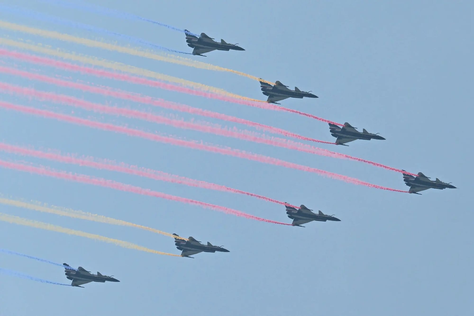 China’s leader, Xi Jinping, presided over a massive military parade in Beijing on Wednesday featuring fighter jets, missiles and goose-stepping troops as he issued a defiant warning to rivals not to challenge his country’s sovereignty. His message was underscored by the leaders gathered by his side in the viewing gallery, representing states that have challenged or questioned American dominance of the global order. He was flanked by President Vladimir V. Putin of Russia and North Korea’s leader, Kim Jong-un, along with the leaders of Iran, Pakistan and other mostly authoritarian nations. Cannons fired 80 times to mark the anniversary of the end of World War II, as soldiers carried a Chinese flag and marched across a red carpet covering part of Tiananmen Square. Crowds watching the parade waved small flags and saluted as the national anthem was played and the flag was raised. Later, pigeons and balloons — said to number 80,000 each — were released into the air.
