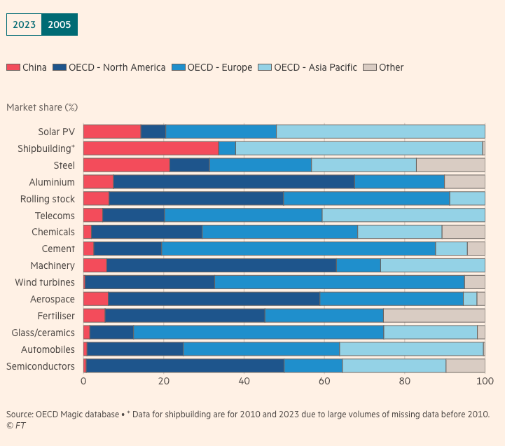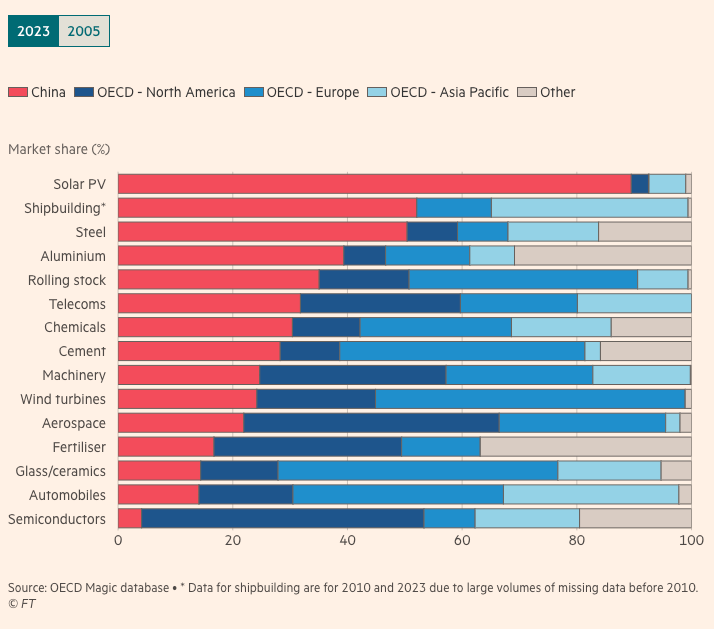 A second "China shock" is reshaping global trade as Chinese manufacturers move beyond low-cost goods into the world's most advanced industries, threatening producers across developed economies. Intense domestic competition, massive industrial scale, deep pools of engineering talent and some of the world's largest government subsidies have produced dominant Chinese firms in electric vehicles, solar panels, batteries, wind turbines and a growing list of high-end sectors. The same dynamics generate chronic overcapacity, crushing margins at home while flooding overseas markets and escalating trade tensions. An undervalued exchange rate has amplified the competitive edge, allowing Chinese groups to push aggressively into industries long considered strongholds of the United States, Europe and Japan. Huang He, an investor in Mega-Senway and more than a dozen other Chinese industrial groups, told the Financial Times that firms able to survive China's internal competition are effectively unbeatable globally and that technology advantages in the country typically erode within six months to a year.