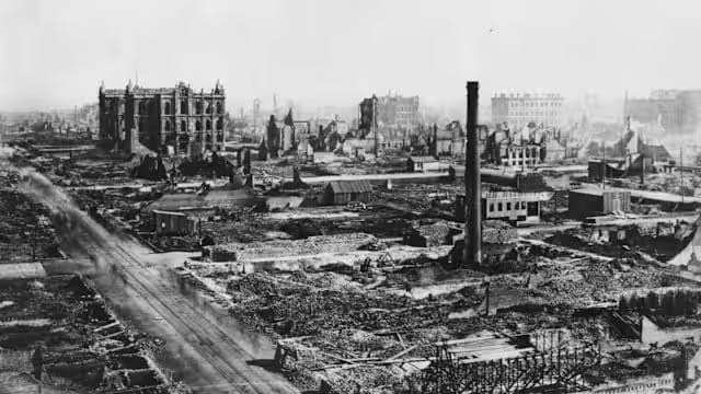October 8 1871: Of 37 separate fires that break out on the same day in the Great Lakes region, three are massive. The Great Chicago fire killed 300, the Great Michigan fire 300-500, and the Wisconsin Peshtigo fire—history's deadliest—killed least 1,200.