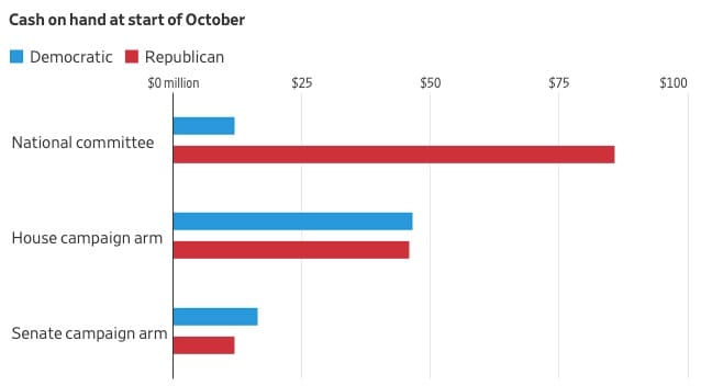 The Republican National Committee heads into the year before the midterm election with a significantly bigger bank balance than the Democratic National Committee, a reflection of the GOP’s dominance in Washington and the minority party’s ongoing struggles. The gap is a warning sign for Democrats as some of their donors remain skeptical of the party’s direction and of whether there is a viable plan to win again. At one point earlier this year, the DNC reached out to big donors to host a San Francisco-area fundraiser headlined by former Vice President Kamala Harris. Most of the donors rejected the request, according to several people familiar with the conversations. Upon receiving the invitation, one replied with a profanity-laced rejection. Others said they didn’t want to give to the party until it produced substantive plans to win elections. Those who declined told the national party they had commitments and couldn’t make it work. The DNC ultimately found a donor who hosted the event, but it raised less than organizers had hoped. The latest fundraising totals released this week show the Democrats’ weakness. The RNC had receipts of $10.7 million in the most recent month and $86 million in cash reserves as it started October, compared with $10.3 million and about $12 million for the DNC, respectively.