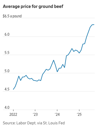 A group of President Trump’s top advisers have convened to tackle soaring beef prices, according to people familiar with the discussions, showing how the administration is escalating efforts to wrangle food inflation. Steak and ground beef have hit record highs this year, sending everyone including meatpackers, supermarkets and restaurants looking for ways to ease the pain. The problem: There is no easy way to bring down prices, which have climbed steadily since 2021. After the pandemic, ranchers decided to thin their cattle herds following years of weakening financial conditions. And because it takes about two years for the animals to reach maturity, the U.S. now has the lowest number of cattle on its pastures since the 1950s. Beef remains a popular protein for consumers to buy, contributing to the supply squeeze. Trump on Saturday called for the Justice Department and Federal Trade Commission to create task forces to examine whether anticompetitive behavior exists in U.S. food supply chains. The Justice Department has also launched a new antitrust investigation into meatpacking companies.
