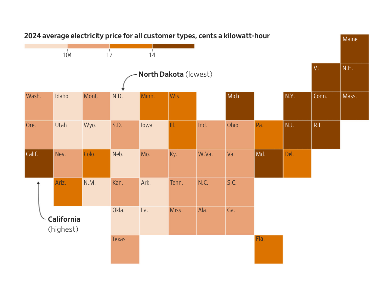 Electricity prices varied widely across the nation in 2024, ranging from 8 cents per kilowatt-hour in North Dakota to 27 cents in California, with the Energy Department projecting another 4% increase next year following a 4.9% rise in 2025. A complex mix of factors is driving costs higher, including data center expansion, hurricane and wildfire damage, state renewable-energy mandates, rooftop solar adoption that shifts costs to non-solar customers, and replacement of aging grid infrastructure. Rising power bills have emerged as a potent political issue heading into the 2026 midterm elections. In New Jersey, where residential rates climbed 21% in September from the previous year, Democrat Mikie Sherrill won the governor's race after calling for a rate freeze. In Georgia, voter anger over rate increases helped two Democrats unseat Republican incumbents on the state's utility commission. For consumers like Liliana Olayo, a 51-year-old retail worker in Aurora, Illinois, the impact is immediate: her summer electricity bills surged from $200 to as high as $454, including past-due amounts, forcing her to play catch-up for months.