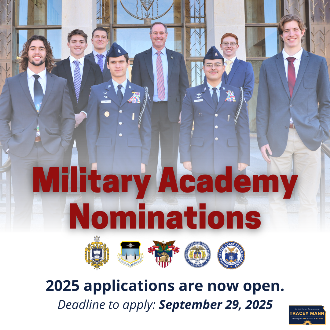 We’re also proud to assist Kansas veterans with accessing benefits and resolving issues with the VA. You can find helpful information and request services anytime at mann.house.gov, or feel free to call one of my offices in Washington, Manhattan, or Dodge City. My team and I are here to serve you.